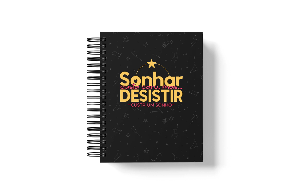 Este caderno personalizado foi feito para quem acredita na força dos sonhos, no foco e na realização. Com frases motivacionais na capa e um design pensado para impulsionar seus planos, ele é perfeito para anotar ideias, metas, reflexões e muito mais.
