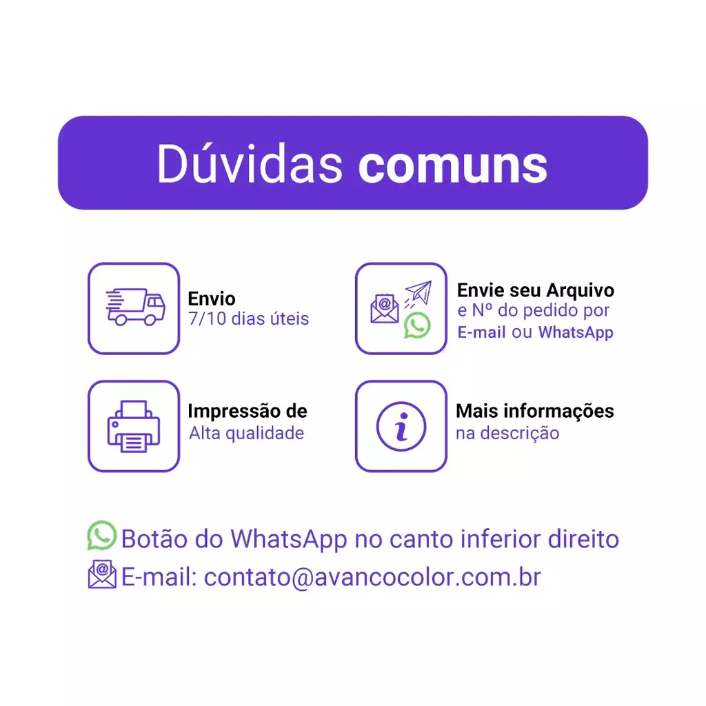> O prazo de produção é de 7 a 8 dias úteis após o pagamento e a aprovação do layout/arte. *Nota¹: O prazo pode sofrer alteração conforme a quantidade e demanda.
